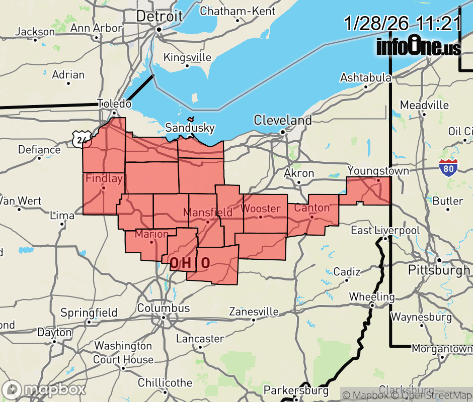Canceled 1/28/26 8:08 PM Cold Weather Advisory issued January 28 at 11:19AM EST until January 29 at 11:00AM EST by NWS Cleveland OH * WHAT... Very cold wind chills as low as 15 below expected. * WHERE... Portions of north central, northeast, and northwest Ohio. * WHEN... From 7 PM this evening to 11 AM EST Thursday. * IMPACTS... The cold wind chills as low as 15 below zero could result in hypothermia if precautions are not taken. ![]() |