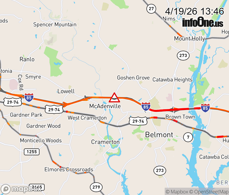 The left lane is closed 2 miles after Exit 26 (Belmont Mt Holl Rd). Updated: Sun 4/19/26 1:46 PM EDT ![]() Updated: Sun 4/19/26 1:46 PM EDT |