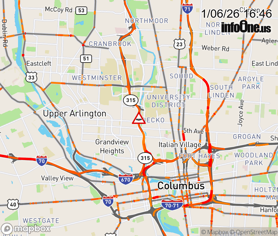 The right shoulder is blocked on SR-315 South beyond Kinnear Rd/Olentangy Rd, due to a crash. ![]() |