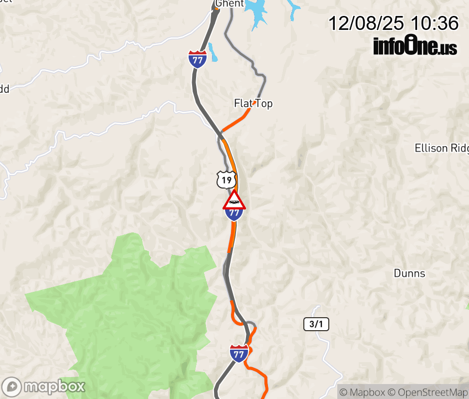 Canceled 12/8/25 11:32 AM Location: I-77 at MM 25.0, WV Accident.