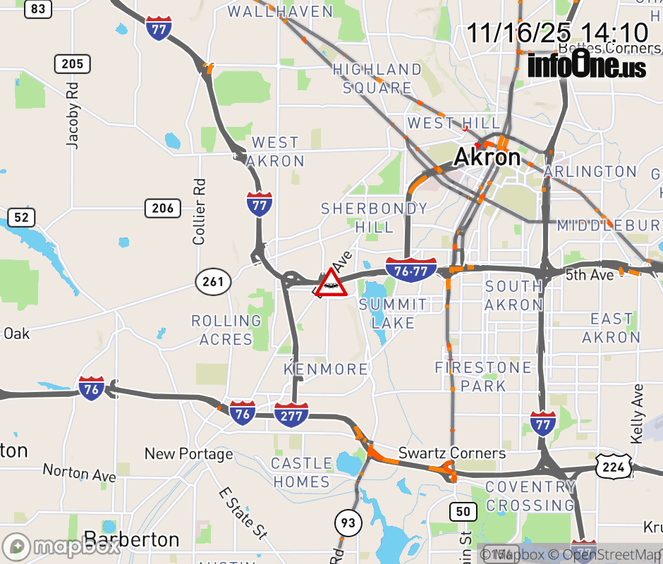 The right lane is blocked on I-76 West/I-77 North at East Ave, due to a crash. ![]() |