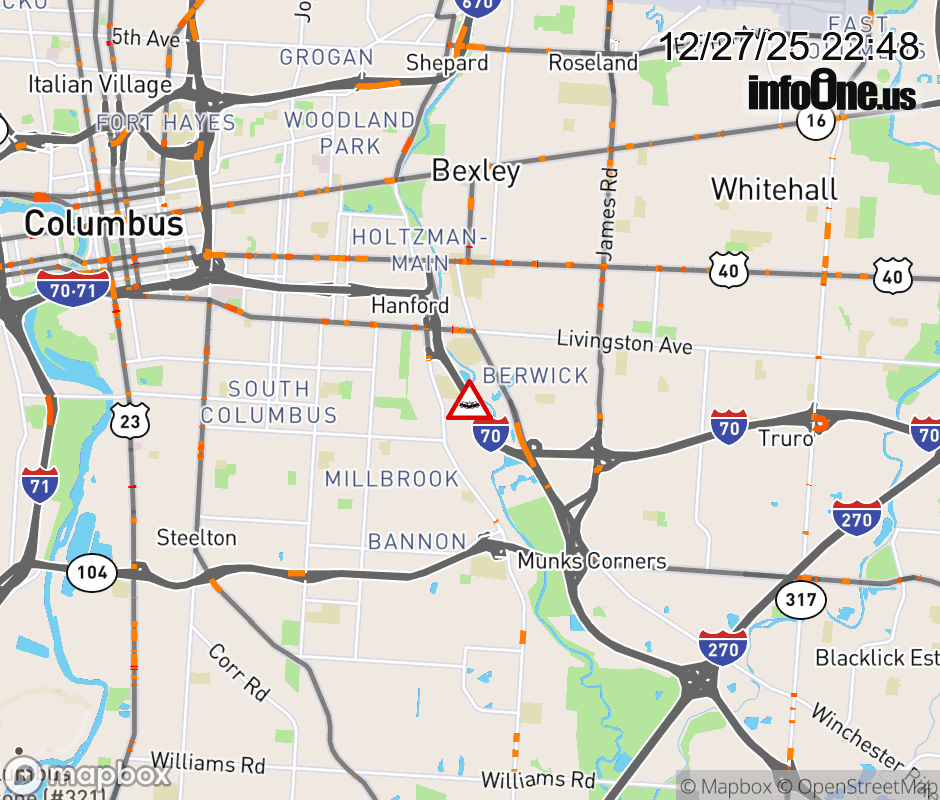 The right shoulder is blocked on I-70 West beyond US-33, due to a crash. ![]() |