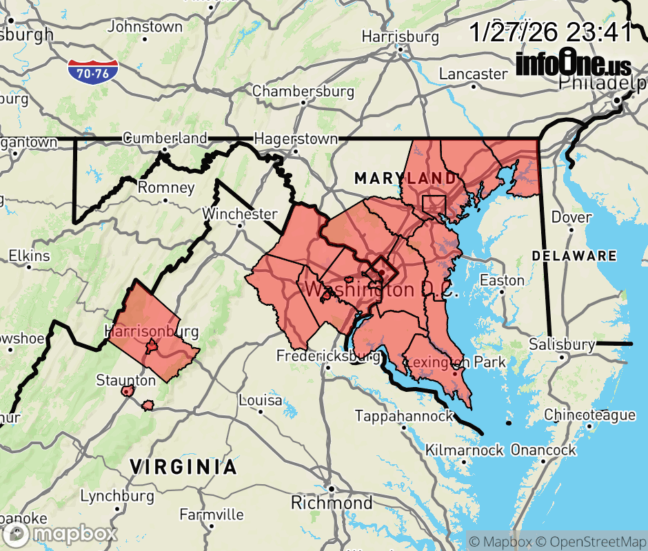 Canceled 1/28/26 7:14 AM Cold Weather Advisory issued January 27 at 11:39PM EST until January 29 at 11:00AM EST by NWS Baltimore MD/Washington DC * WHAT... For the first Cold Weather Advisory, very cold wind chills as low as 8 below zero. For the second Cold Weather Advisory, very cold wind chills as low as 8 below zero expected. * WHERE... Portions of DC, central, northeast, northern, and southern Maryland, and northern and western Virginia. * WHEN... For the first Cold Weather Advisory, until 11 AM EST Wednesday. For the second Cold Weather Advisory, from 7 PM Wednesday to 11 AM EST Thursday. * IMPACTS... The cold wind chills as low as 8 below zero could result in hypothermia if precautions are not taken. Frostbite and hypothermia will occur if unprotected skin is exposed to these temperatures. Wind chill values can lead to hypothermia with prolonged exposure. Very cold temperatures can lead to hypothermia with prolonged exposure. * ADDITIONAL DETAILS... Additional Cold Weather Headlines are expected at times through the end of the week as the region remains in an Arctic airmass. ![]() |