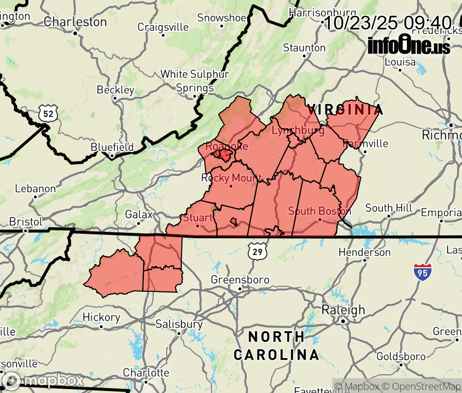 Canceled 10/23/25 9:22 PM Frost Advisory issued October 23 at 9:38AM EDT until October 24 at 9:00AM EDT by NWS Blacksburg VA * WHAT... Temperatures as low as 33 will result in frost formation. * WHERE... Portions of north central and northwest North Carolina and central, south central, southwest, and west central Virginia. * WHEN... From 2 AM to 9 AM EDT Friday. * IMPACTS... Frost could harm sensitive outdoor vegetation. Sensitive outdoor plants may be killed if left uncovered. ![]() |