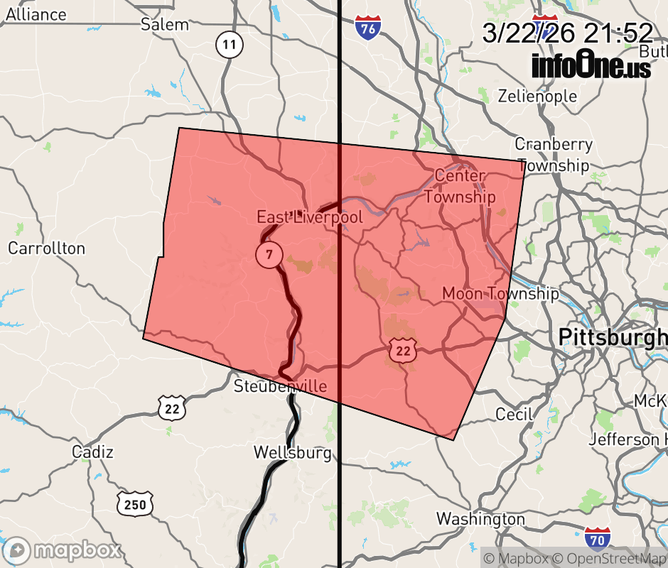 Canceled 3/22/26 10:03 PM Severe Thunderstorm Warning issued March 22 at 9:51PM EDT until March 22 at 10:15PM EDT by NWS Pittsburgh PA SVRPBZ The National Weather Service in Pittsburgh has issued a * Severe Thunderstorm Warning for... Southeastern Columbiana County in east central Ohio... Northern Jefferson OH County in east central Ohio... Northwestern Allegheny County in southwestern Pennsylvania... Northwestern Washington County in southwestern Pennsylvania... Southern Beaver County in western Pennsylvania... Brooke County in northern West Virginia... Hancock County in northern West Virginia... * Until 1015 PM EDT. * At 951 PM EDT, severe thunderstorms were located along a line from 6 miles northwest of Calcutta to near Wintersville, or along a line from 8 miles northwest of East Liverpool to 8 miles northwest of Steubenville, moving east at 65 mph. HAZARD...60 mph wind gusts. SOURCE...Radar indicated. IMPACT...Expect damage to roofs, siding, and trees. * Locations impacted include... Moon Township, Weirton, Steubenville, East Liverpool, Aliquippa, Monaca, Wellsville, Economy, Ambridge, Toronto, Beaver, Calcutta, Baden, Sewickley, Rochester, Ohioville, Harmony Township, Midland, Chester and Imperial. ![]() |