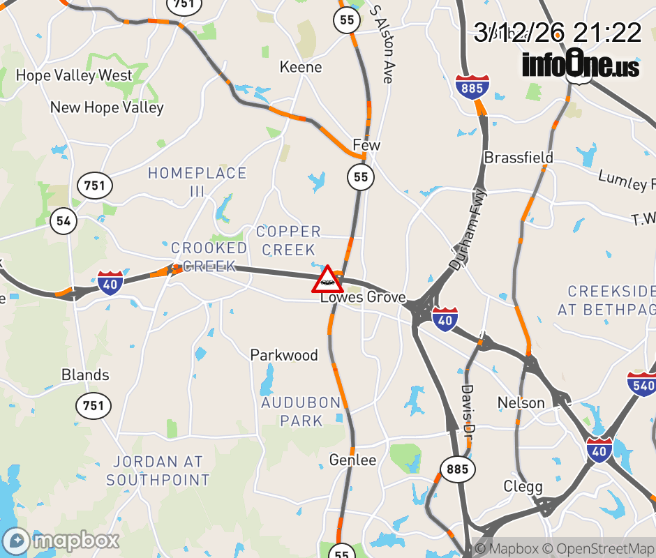 The right shoulder is closed past Exit 278 (NC-55). Updated: Thu 3/12/26 9:22 PM EDT ![]() Updated: Thu 3/12/26 9:22 PM EDT |