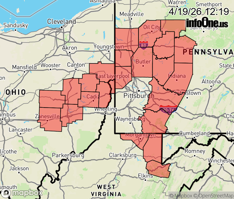 Portions of east central Ohio, northwest, southwest, and western Pennsylvania, and northern West Virginia.