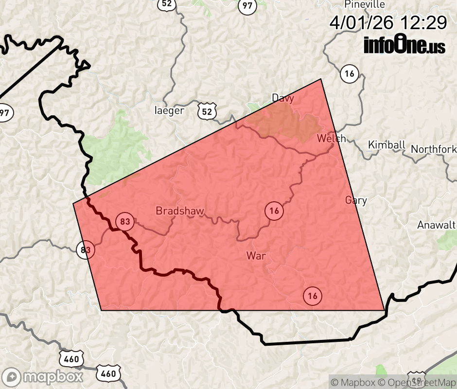 Canceled 4/1/26 12:45 PM Special Weather Statement issued April 1 at 12:27PM EDT by NWS Charleston WV At 1227 PM EDT, Doppler radar was tracking a strong thunderstorm 8 miles west of War, or 14 miles east of Grundy, moving east at 30 mph. HAZARD...Wind gusts up to 40 mph and half inch hail. SOURCE...Radar indicated. IMPACT...Gusty winds could knock down tree limbs and blow around unsecured objects. Minor hail damage to vegetation is possible. Locations impacted include... Welch, Gary, War, Davy, Bradshaw, Coalwood, Avondale, Jolo, and Cucumber. ![]() |