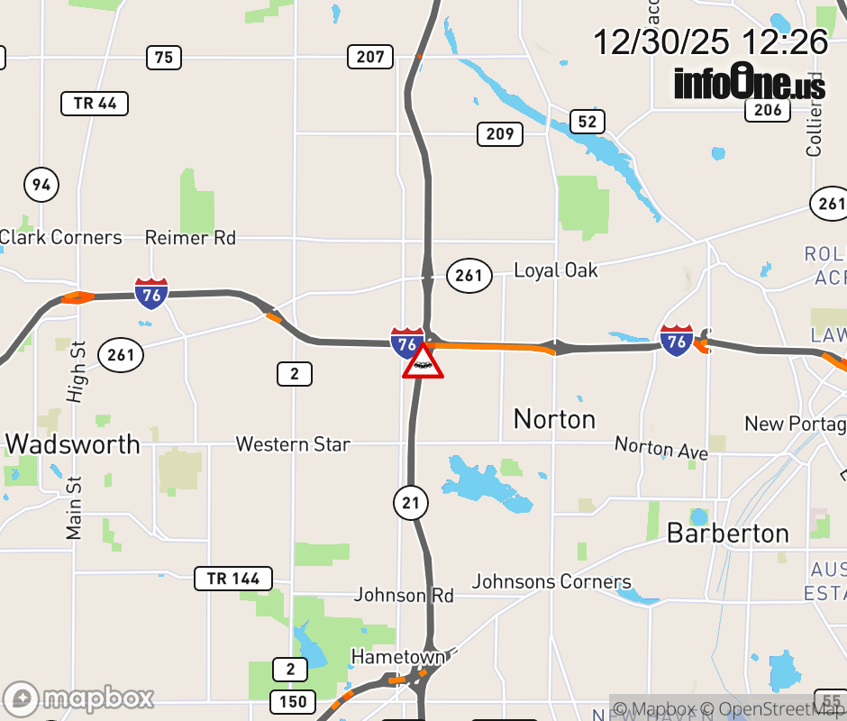 Ramp SR-21 North to I-76/US-224 East CLOSED because of a crash. ![]() |