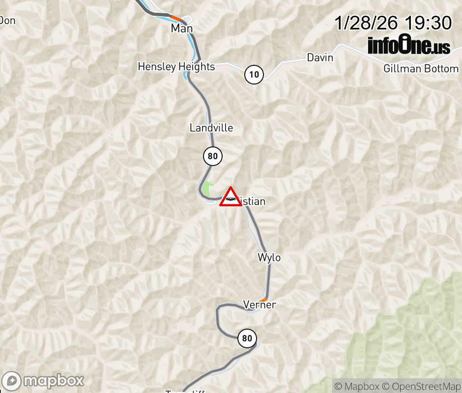 Vehicle Crash on WV 80 at Christian . The northbound road is closed. The southbound road is closed. Updated: Wed 1/28/26 7:30 PM EST ![]() Updated: Wed 1/28/26 7:30 PM EST |