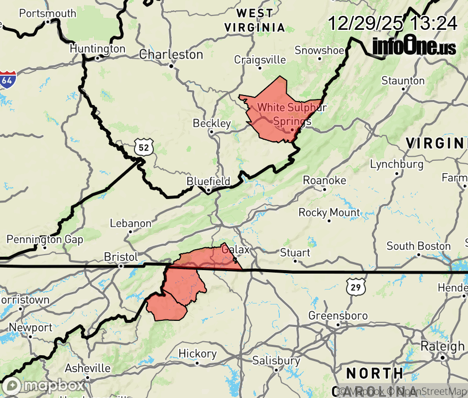 Canceled 12/29/25 9:17 PM Cold Weather Advisory issued December 29 at 1:22PM EST until December 30 at 10:00AM EST by NWS Blacksburg VA * WHAT... For the High Wind Warning, northwest winds 25 to 35 mph with gusts up to 60 mph. For the Cold Weather Advisory, very cold wind chills as low as 10 below expected. * WHERE... In North Carolina, Ashe and Watauga Counties. In Virginia, Grayson County. In West Virginia, Western Greenbrier County. * WHEN... For the High Wind Warning, until noon EST Tuesday. For the Cold Weather Advisory, from 10 PM this evening to 10 AM EST Tuesday. * IMPACTS... Damaging winds will blow down trees and power lines. Widespread power outages are expected. Travel will be difficult, especially for high profile vehicles. The cold wind chills as low as 10 below zero could result in hypothermia if precautions are not taken. ![]() |