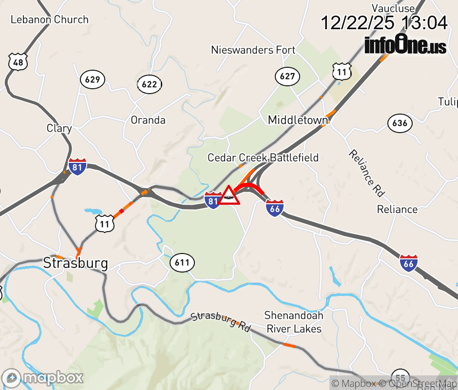 On I-81 South at mile marker 300 in the County of Frederick, motorists can expect delays due to a tractor trailer crash. Updated: Mon 12/22/25 1:04 PM EST ![]() Updated: Mon 12/22/25 1:04 PM EST |