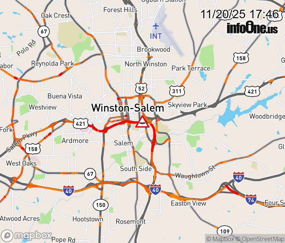 The 2 right lanes are closed at Exit 232C (US 52 S). Updated: Thu 11/20/25 5:46 PM EST ![]() Updated: Thu 11/20/25 5:46 PM EST |