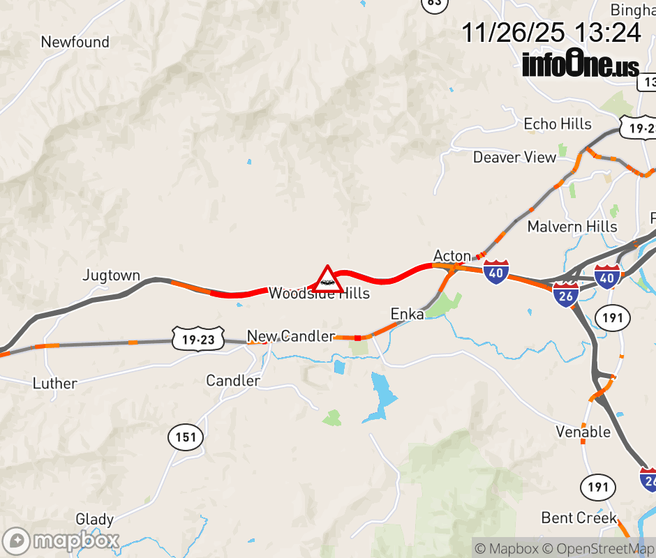 Canceled 11/26/25 2:36 PM Location: I-40E at MM 42, NC Vehicle Crash.
