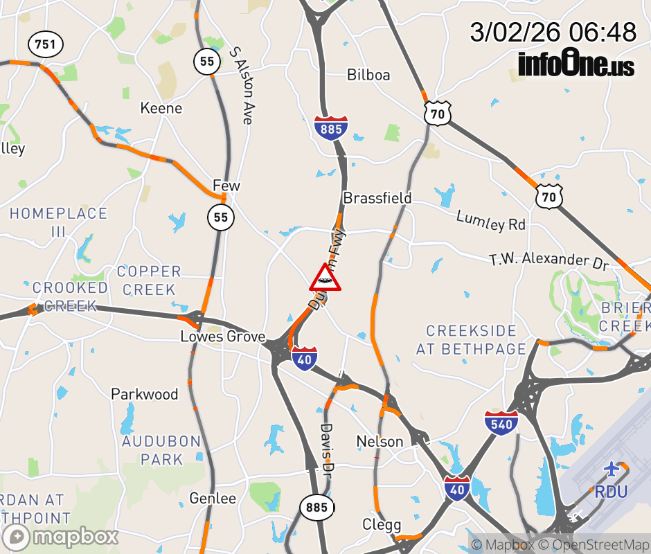 Canceled 3/2/26 7:38 AM Location: Durham Fwy (I-885S) at MM 6, NC Vehicle Crash.