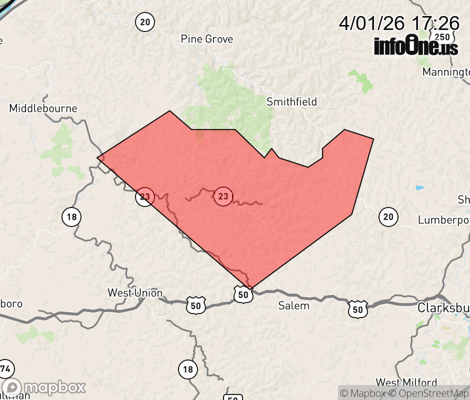 Canceled 4/1/26 5:46 PM Severe Thunderstorm Warning issued April 1 at 5:25PM EDT until April 1 at 6:00PM EDT by NWS Charleston WV SVRRLX The National Weather Service in Charleston West Virginia has issued a * Severe Thunderstorm Warning for... Northeastern Doddridge County in northern West Virginia... East central Tyler County in northern West Virginia... Northwestern Harrison County in northern West Virginia... * Until 600 PM EDT. * At 524 PM EDT, a severe thunderstorm was located 7 miles southwest of Jacksonburg, or 11 miles east of Middlebourne, moving east at 30 mph. HAZARD...60 mph wind gusts and quarter size hail. SOURCE...Radar indicated. IMPACT...Hail damage to vehicles is expected. Expect wind damage to roofs, siding, and trees. * Locations impacted include... Center Point, Sedalia, Wallace, and Lima. ![]() |