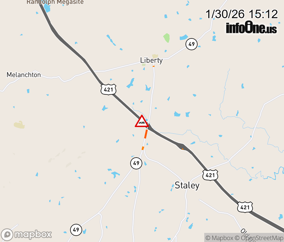 The right lane is closed at Exit 181 (NC-49). ![]() |