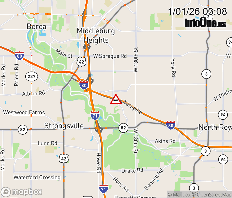 Canceled 1/1/26 4:42 AM Location: I-80 West (Ohio Turnpike) W, OH Accident.