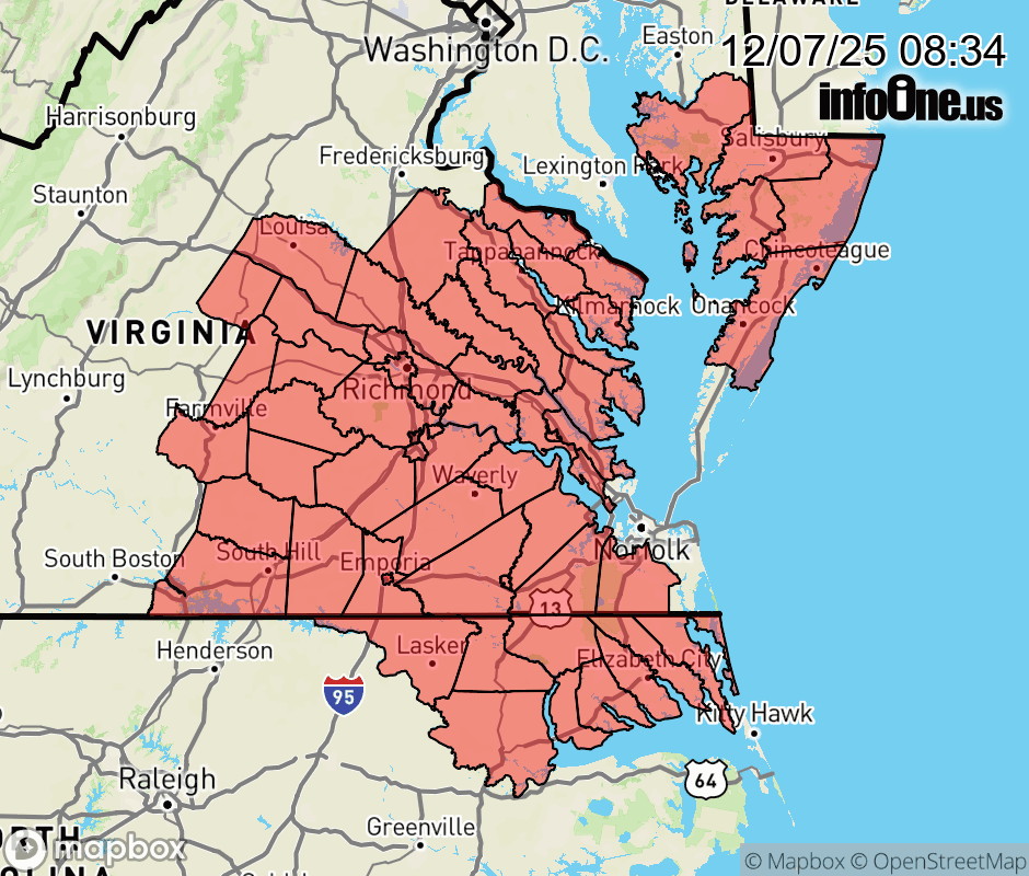 Canceled 12/7/25 9:56 AM Freezing Fog Advisory issued December 7 at 8:33AM EST until December 7 at 10:00AM EST by NWS Wakefield VA * WHAT... Visibility one quarter mile or less in freezing fog. * WHERE... Portions of southeast Maryland, northeast North Carolina, and central, east central, eastern, north central, south central, and southeast Virginia. * WHEN... Until 10 AM EST this morning. * IMPACTS... Low visibility could make driving conditions hazardous. ![]() |