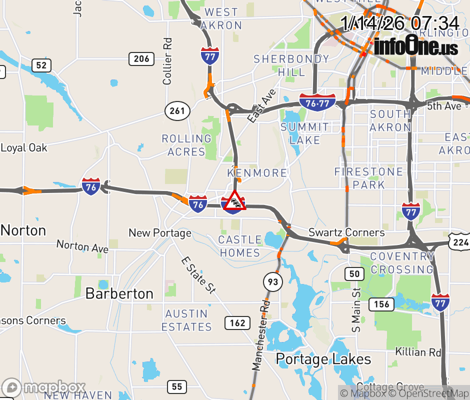 The left shoulder is blocked on I-76 East at I-277/US-224, due to repairs/maintenance. ![]() |