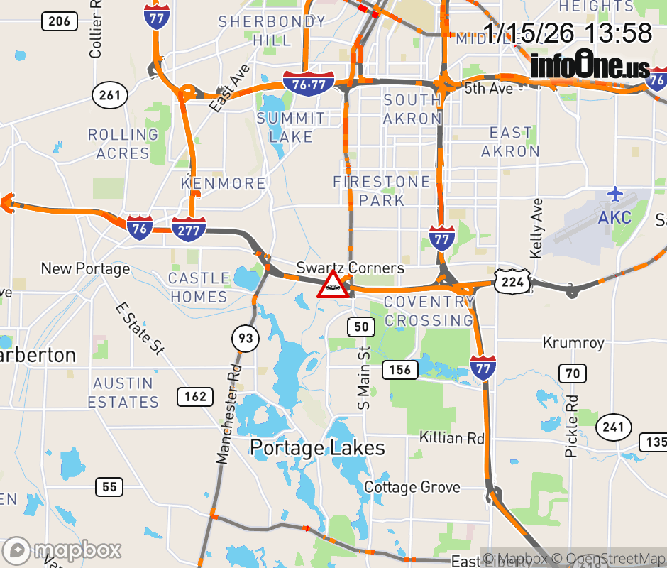The right lane is blocked on I-277/US-224 West beyond S Main St, due to a crash. ![]() |