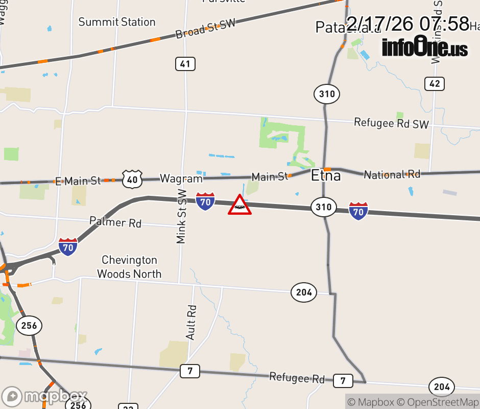 Canceled 2/17/26 8:46 AM Location: I-70 East at MM 116.7, OH Accident.