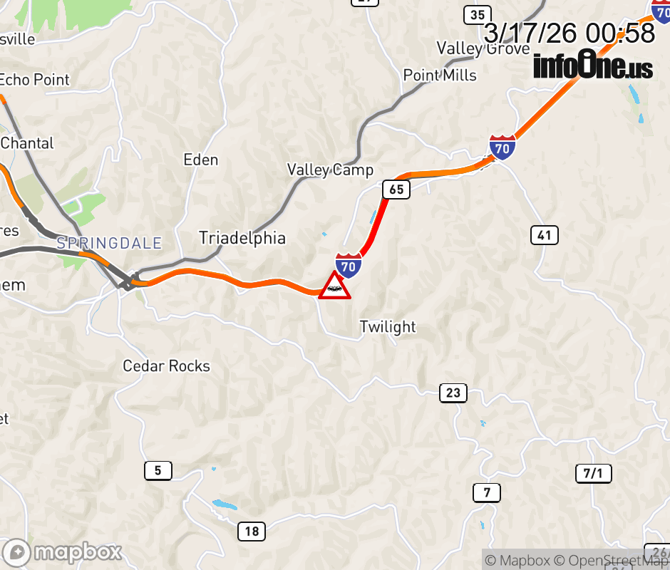Canceled 3/17/26 2:06 AM Location: I-70 at MM 8.0, WV Accident.