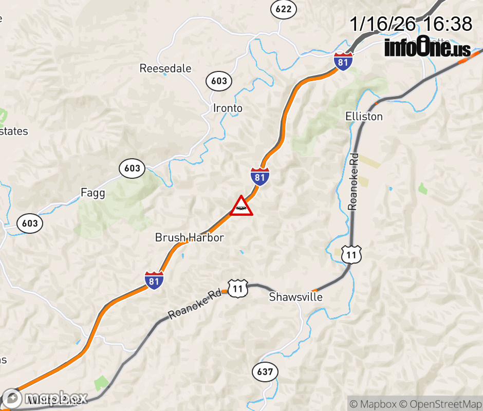 On I-81 at mile marker 124.7 in the County of Montgomery, motorists can expect delays due to a multi-vehicle crash. The north left shoulder and left lane are closed. ![]() |