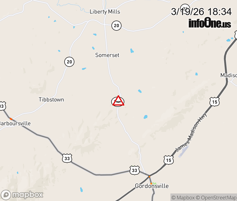 On VA-231 in the County of Orange, in the vicinity of Perrys Mill Rd; Rt. 654N/S (Orange County), motorists can expect delays due to a vehicle crash. All south lanes are closed. ![]() |