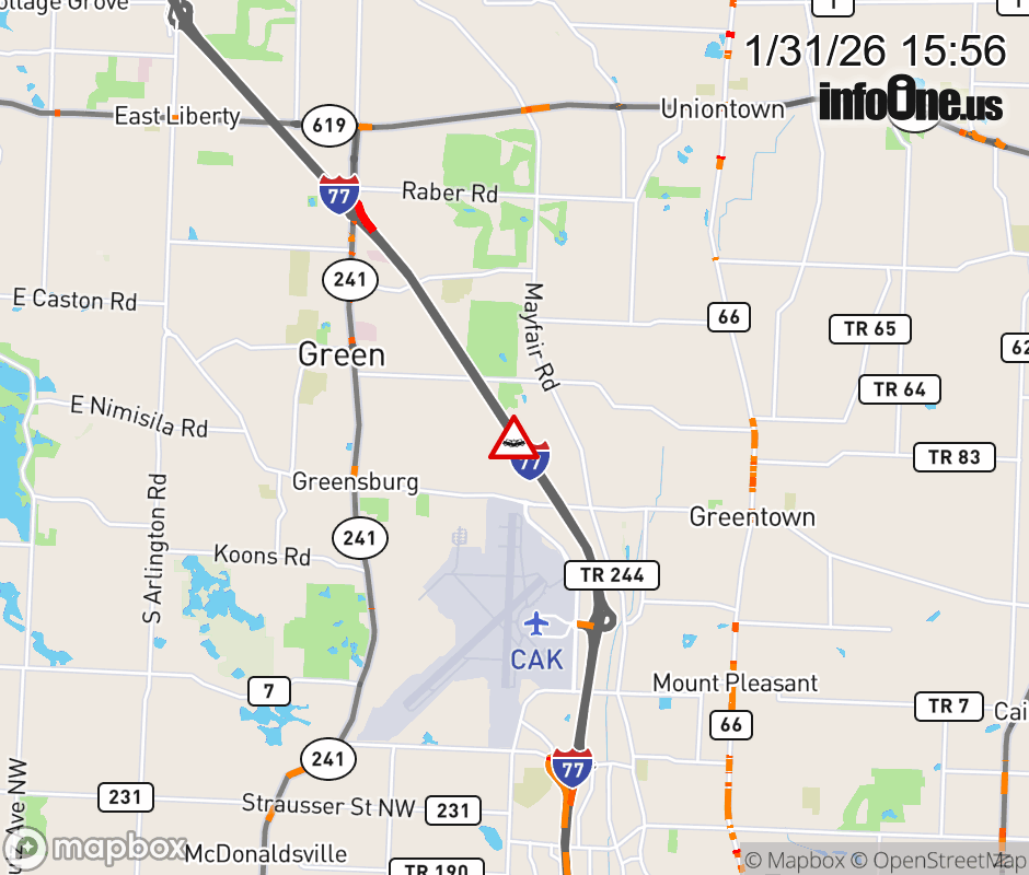 The left lane is blocked on I-77 South beyond SR-241 To SR-619, due to a crash.