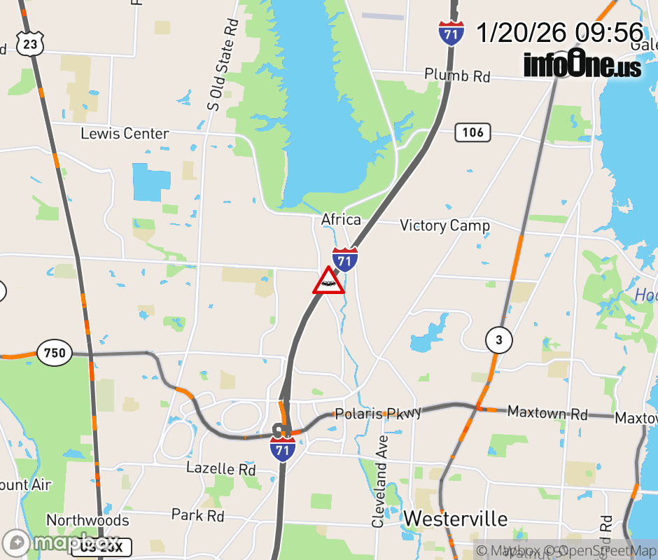 The right lane is blocked on I-71 South beyond Delaware County Rest Area 6-26, due to a crash. ![]() |
