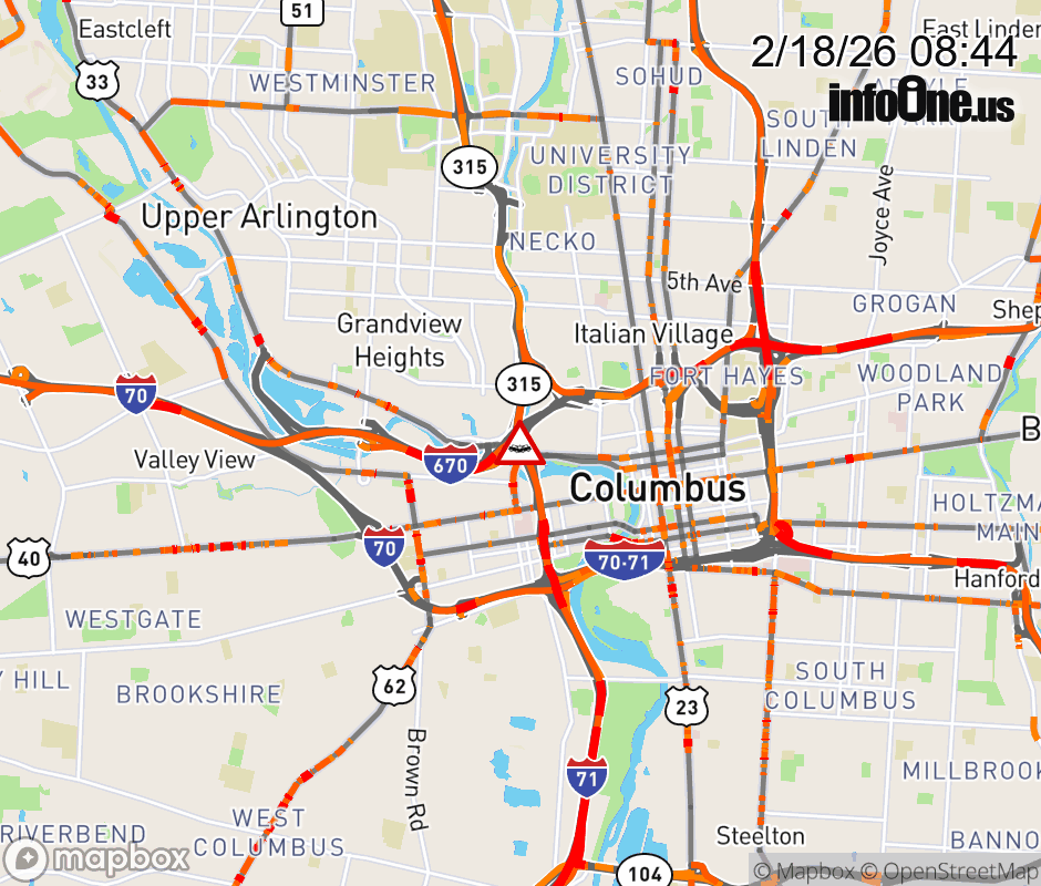 The left lane is blocked on SR-315 North at I-670 East, due to a crash. Updated: Wed 2/18/26 8:44 AM EST ![]() Updated: Wed 2/18/26 8:44 AM EST |