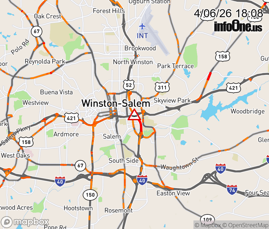 The left lane is closed at Exit 109B (US 421). ![]() Updated: Mon 4/6/26 6:08 PM EDT |
