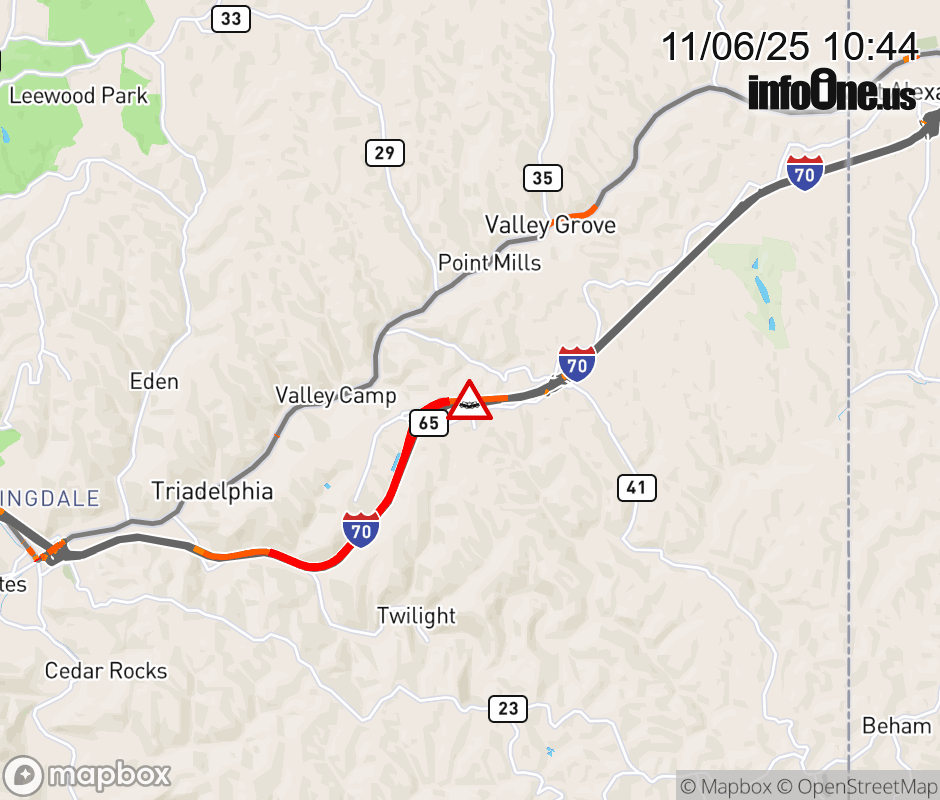 Canceled 11/6/25 11:22 AM Location: I-70 at MM 10.0, WV Accident.