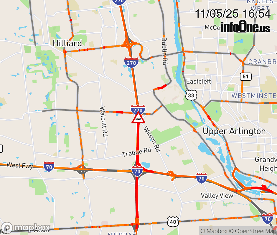 The left shoulder is blocked on I-270 North at Roberts Rd, due to a crash. Updated: Wed 11/5/25 4:54 PM EST ![]() Updated: Wed 11/5/25 4:54 PM EST |