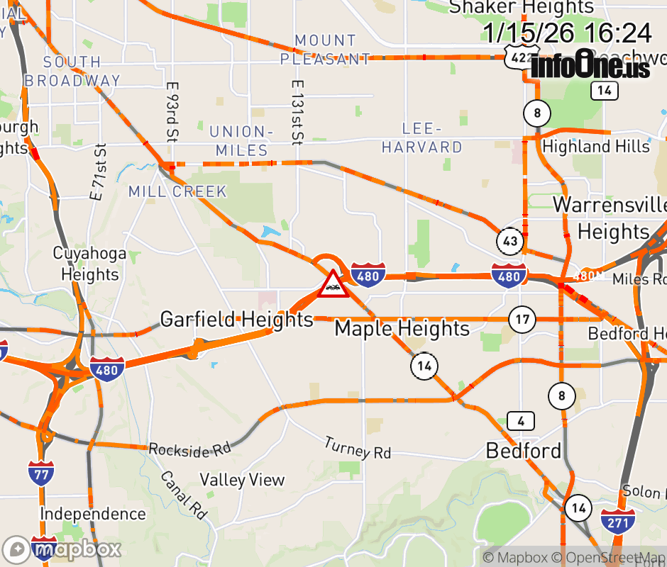 The right lane is blocked on I-480 West beyond SR-14/Broadway Ave, due to a disabled vehicle. ![]() |