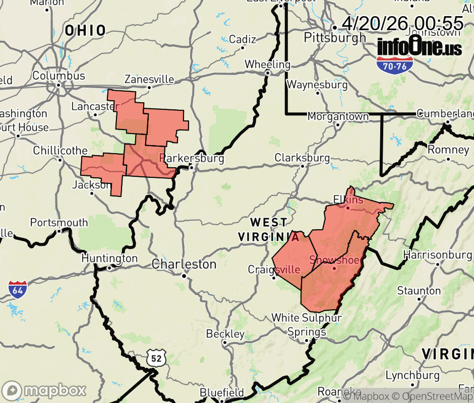 Freeze Warning issued April 20 at 12:54AM EDT until April 21 at 9:00AM EDT by NWS Charleston WV * WHAT... For the first Freeze Warning, sub-freezing temperatures as low as 30 expected. For the second Freeze Warning, sub-freezing temperatures as low as 26 expected. * WHERE... In Ohio, Athens, Morgan, Perry, and Vinton Counties. In West Virginia, Northwest Pocahontas, Northwest Randolph, Southeast Randolph, and Southeast Webster Counties. * WHEN... For the first Freeze Warning, until 10 AM EDT this morning. For the second Freeze Warning, from 11 PM this evening to 9 AM EDT Tuesday. * IMPACTS... Frost and freeze conditions could kill crops, other sensitive vegetation and possibly damage unprotected outdoor plumbing. ![]() |