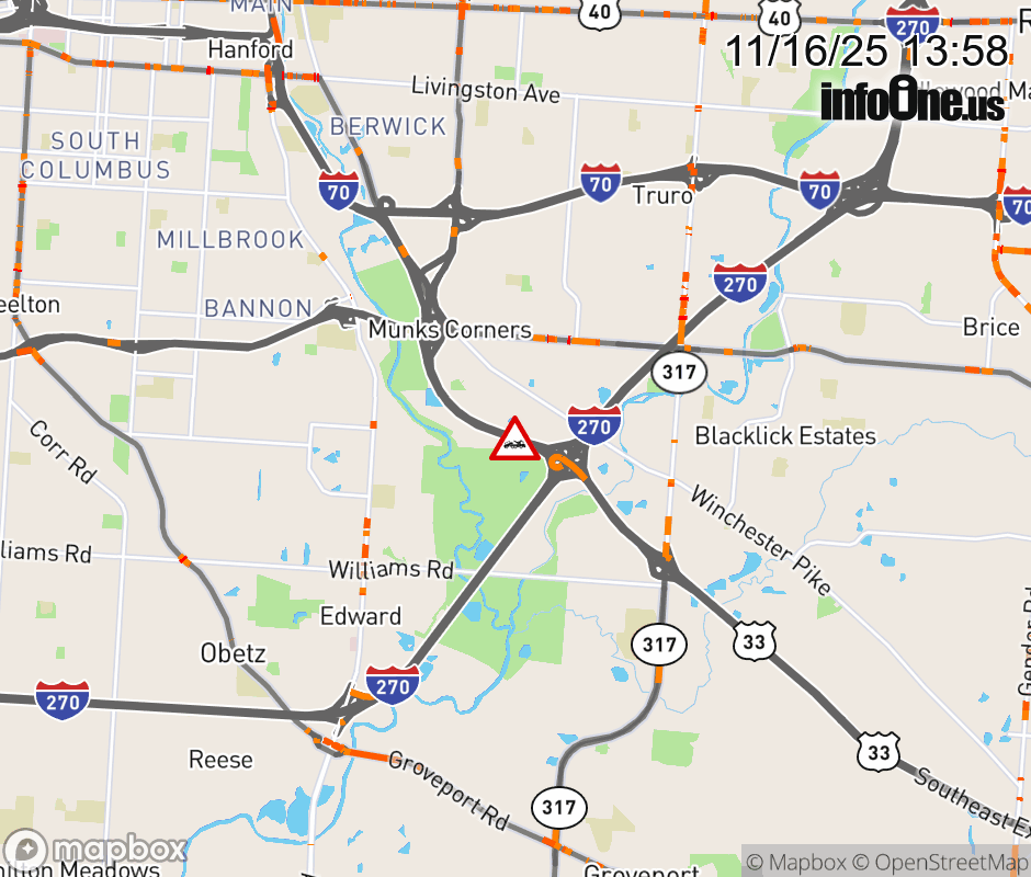 The right lane is blocked on US-33 West beyond I-270 South, due to a disabled vehicle. ![]() |