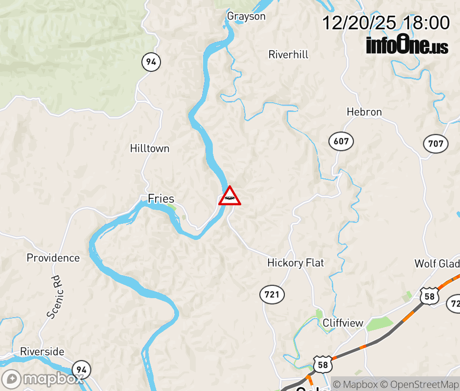 On Rt. 721 in the County of Carroll, in the vicinity of Dixon Rd; Fries Rd; Rt. 606N/S (Carroll County), motorists can expect delays due to a vehicle crash. All east lanes are closed. ![]() |