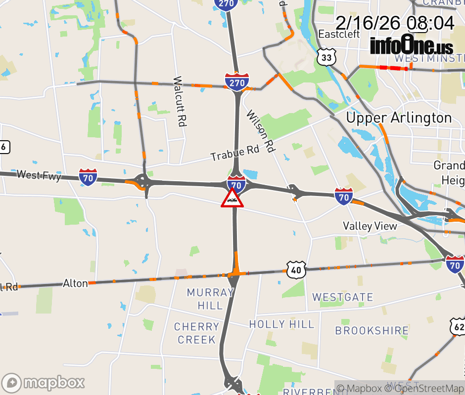 Ramp I-70 West to I-270 South CLOSED because of a disabled vehicle. Updated: Mon 2/16/26 8:04 AM EST ![]() Updated: Mon 2/16/26 8:04 AM EST |