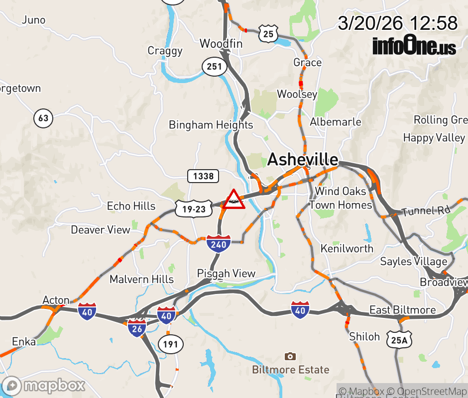 The right lane is closed near Exit 3A, US-19 (Patton Avenue). ![]() |
