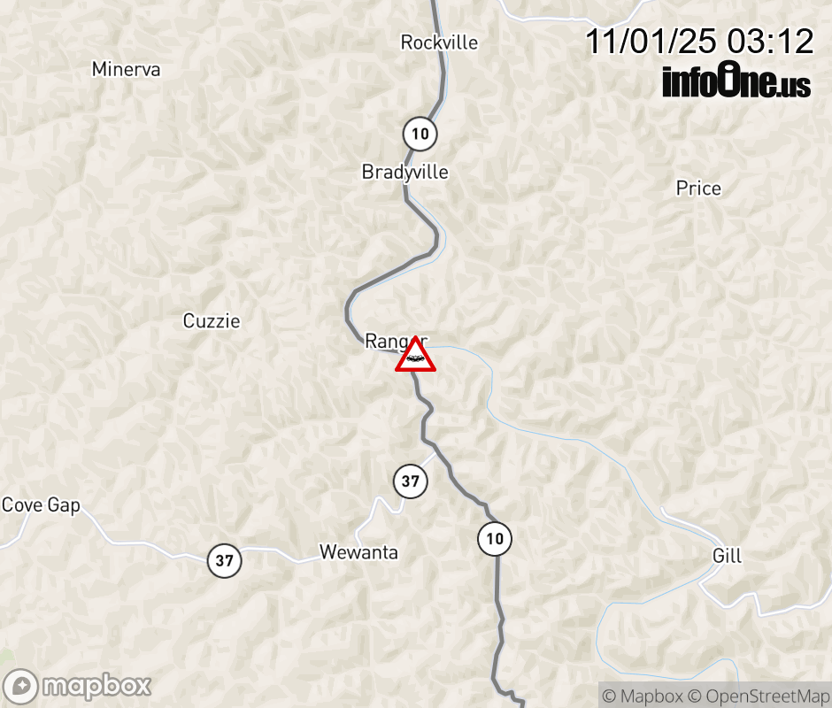 Vehicle Crash on WV 10 (2908 McClellan Hwy, Ranger). The northbound road is closed. The southbound road is closed. Updated: Sat 11/1/25 3:12 AM EDT ![]() Updated: Sat 11/1/25 3:12 AM EDT  |