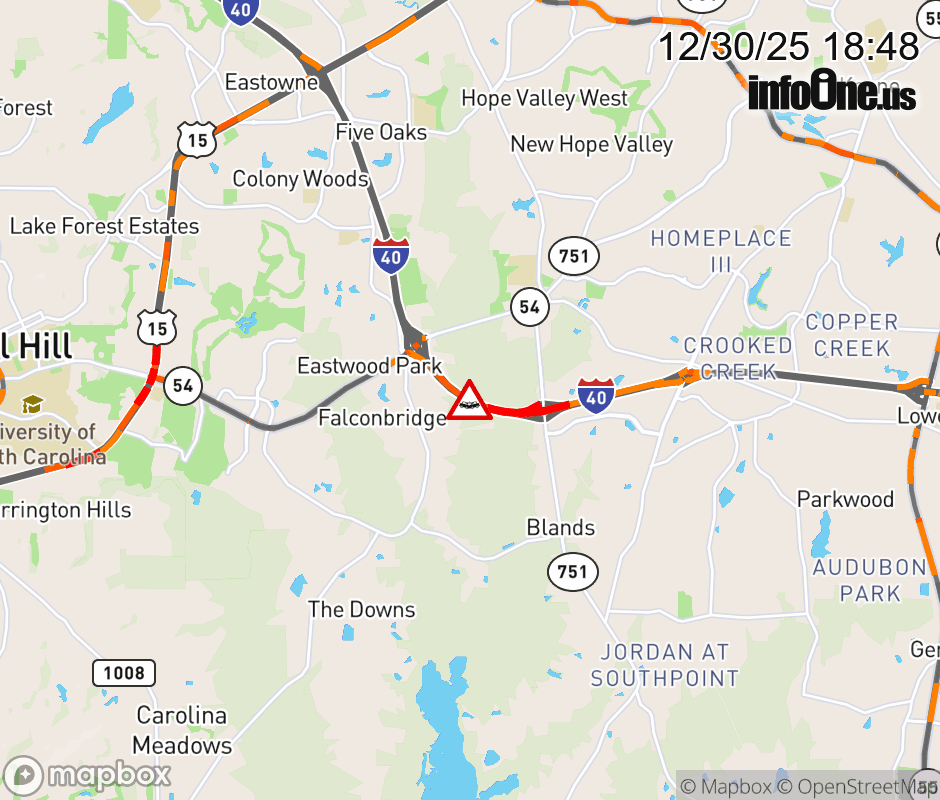 The right shoulder is closed after Exit 274 (NC 751). Updated: Tue 12/30/25 6:48 PM EST ![]() Updated: Tue 12/30/25 6:48 PM EST |