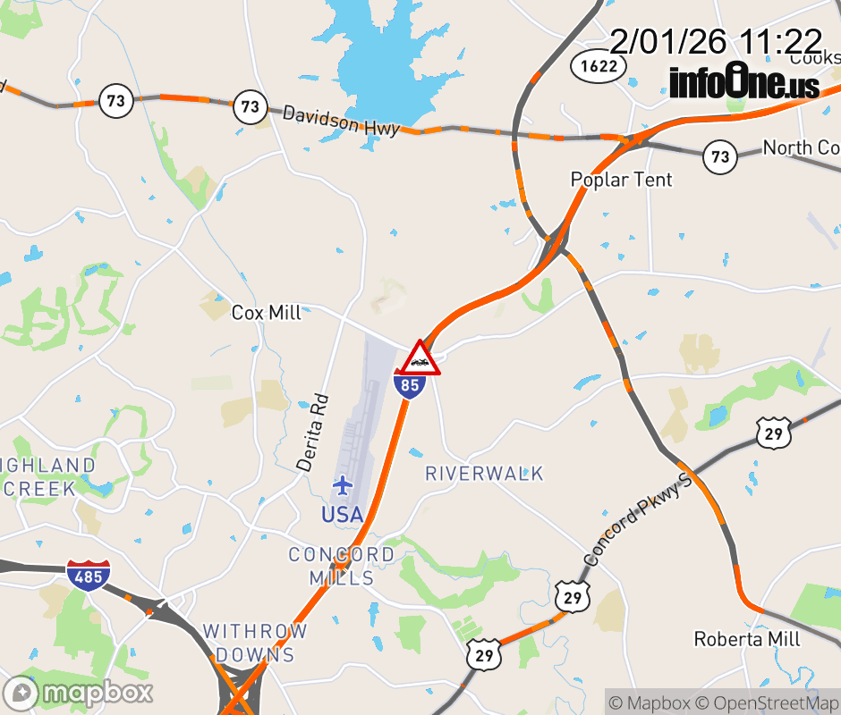 The right lane is closed at Exit 52 (Popular Tent Road). ![]() |