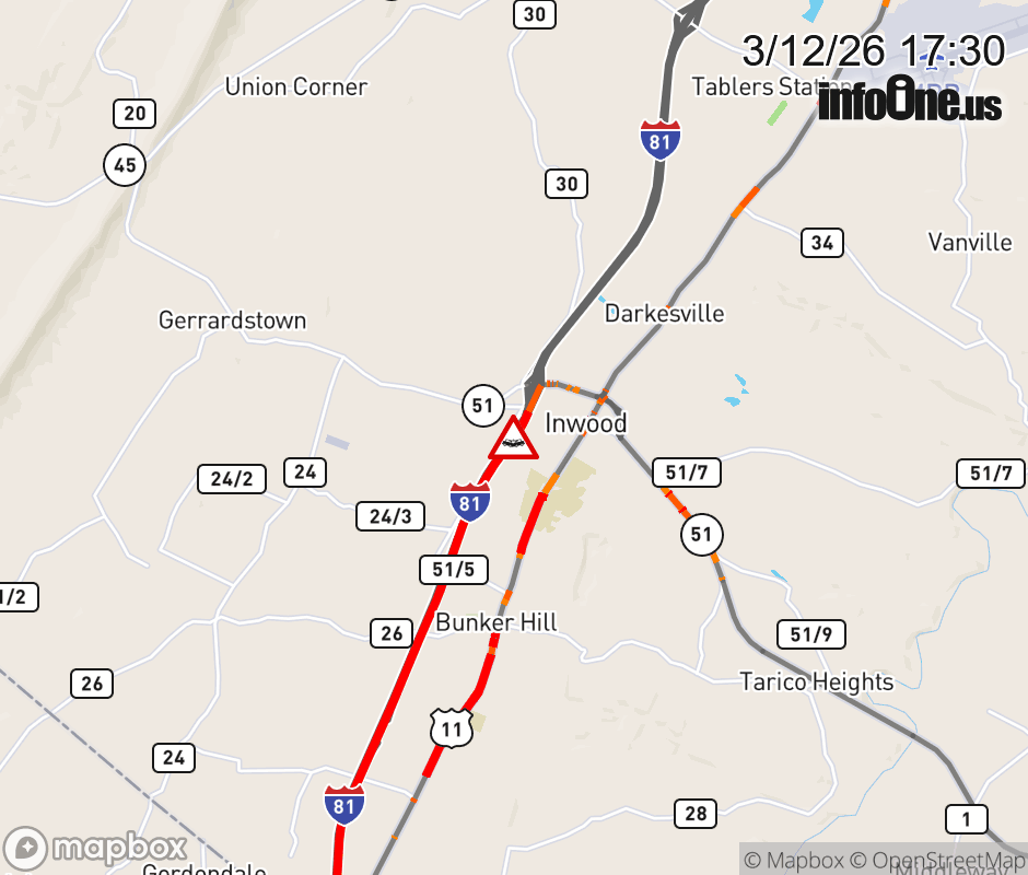 Vehicle Crash on I-81N at Mile Marker 4.5. The northbound right lane is closed. Updated: Thu 3/12/26 5:30 PM EDT ![]() Updated: Thu 3/12/26 5:30 PM EDT |