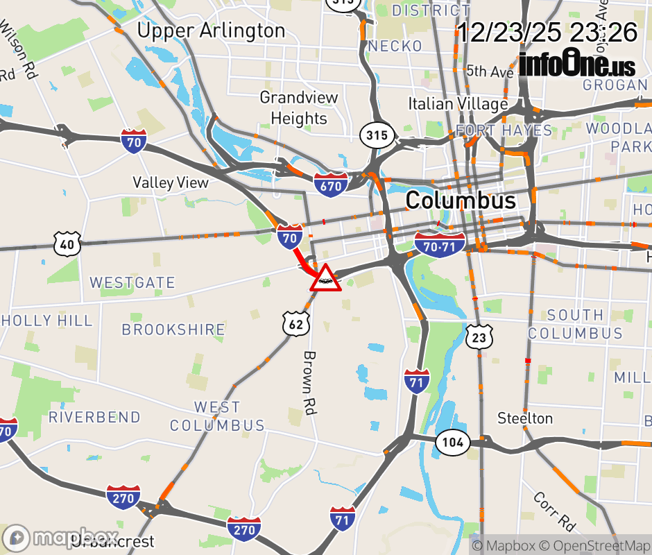 The right lane is closed on I-70 East beyond US-40/ W Broad St, due to a crash. Updated: Tue 12/23/25 11:26 PM EST ![]() Updated: Tue 12/23/25 11:26 PM EST |