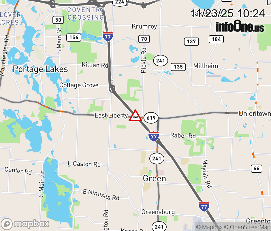 The right lane is blocked on I-77 North beyond SR-241/Massillon Rd, due to a crash. ![]() |