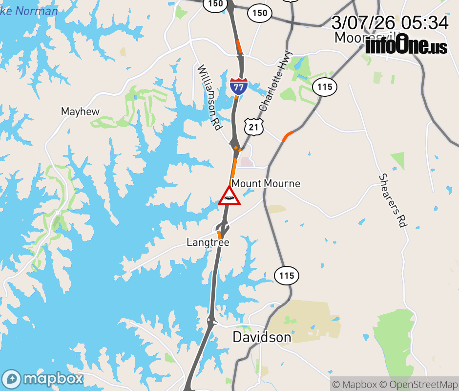VEHICLE ACCIDENT I-77 NORTHBOUND AT MILE MARKER 34.2 ALL LANES BLOCKED Updated: Sat 3/7/26 5:34 AM EST ![]() Updated: Sat 3/7/26 5:34 AM EST |