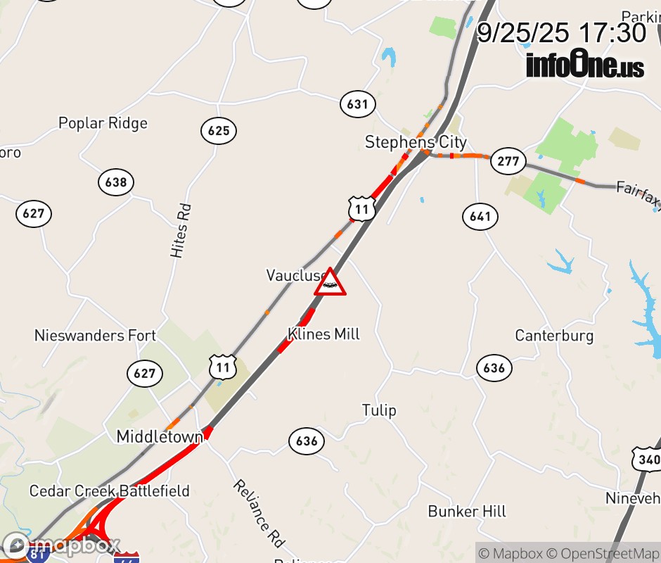 On I-81 North at mile marker 305 in the County of Frederick, motorists can expect delays due to a vehicle crash. Updated: Thu 9/25/25 5:30 PM EDT ![]() Updated: Thu 9/25/25 5:30 PM EDT |