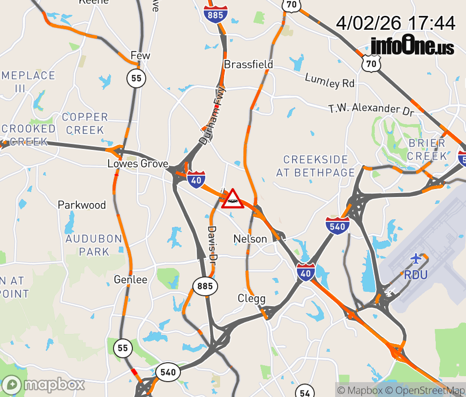 The left shoulder is closed at Exit 280 (Davis Dr). ![]() |